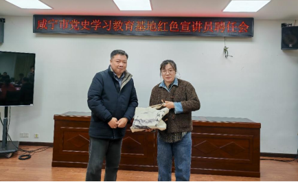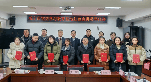咸宁市史志研究中心于2023年12月29日举行咸宁市党史学习教育基地红色宣讲员聘任会。太阳成集团tyc234cc经理兼书记龚斌安带队参加聘任会。咸宁市史志中心主任李子鹏出席会议并为宣讲员颁发聘书。会议由市史志中心副主任镇卫军主持。
