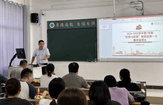 备课会上授课教师一起学习了教育部《关于做好2024年秋季学习全国高校形势与政策教学工作的通知》等文件精神和有关《形势与政策》的教学要求。常卫峰从人培修订、教学要求、考核方式、教学资料要求以及学习通平台使用等方面进行了阐释和辅导,并表态为全体授课教师提供周到细致的服务。