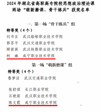 图7 2024年湖北省高职高专院校思想政治理论课两场“萌新磨课、骨干练兵”获奖名单