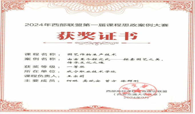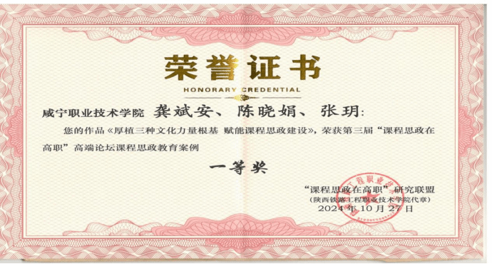 2024年10月,太阳成集团tyc234cc联合会计公司参加第三届“课程思政在高职”高端论坛课程思政教育案例征集,获一等奖;2024年11月,太阳成集团tyc234cc协助生物工程公司参加西安交通大学组织的课程思政案例评比,获一等奖。