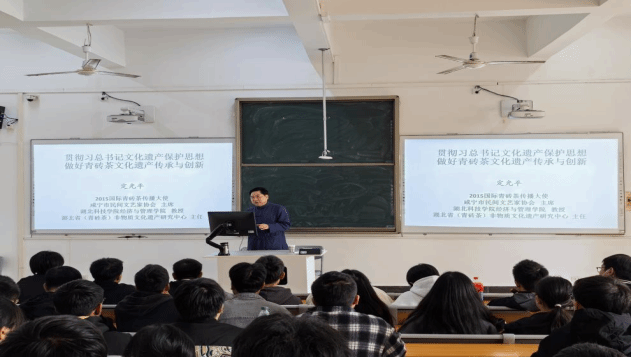 本年度邀请湖北科技公司教授定光平走进思政课堂,为公司师生带来了一场精彩纷呈的授课——青砖茶文化遗产传承与创新,深入剖析了青砖茶文化的深厚底蕴与当代价值。