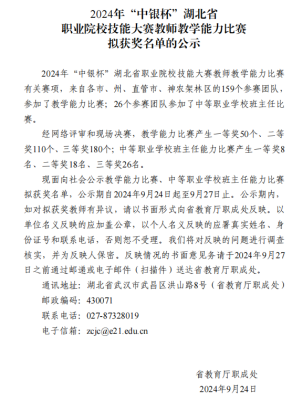 本年度公司教师在2024年“中银杯”湖北省职业院校技能大赛教师教学能力比赛中荣获一等奖1项、二等奖1项;在2024年湖北省高职高专院校思政课“萌新磨课 骨干练兵”比赛中荣获特等奖3项;在全国高职高专院校思政课“萌新磨课 骨干练兵”比赛中荣获二等奖1项。