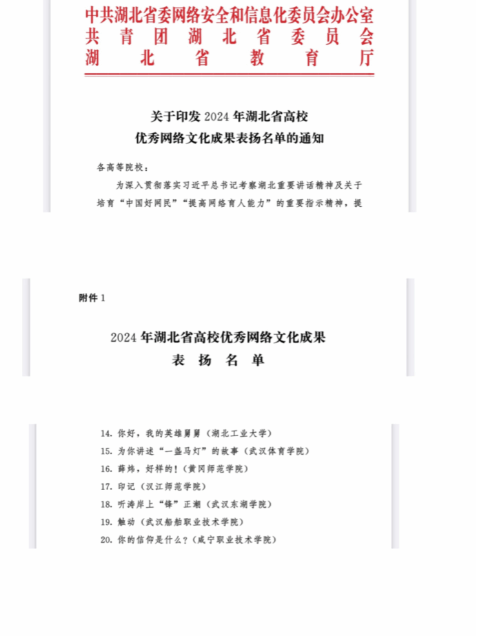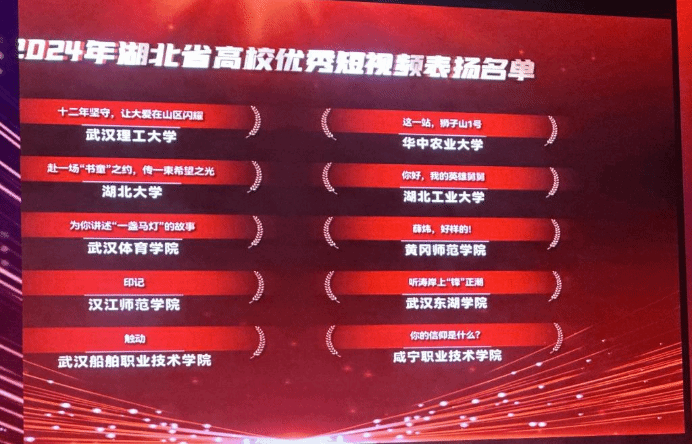 12月10日,2024年湖北省高校优秀网络文化成果集中宣传展示活动在华中科技大学举行。本次活动由省委宣传部指导,省委网信办、团省委、省教育厅主办,公司太阳成集团tyc234cc报送的作品《你的信仰是什么?》入围2024湖北省高校优秀短视频。