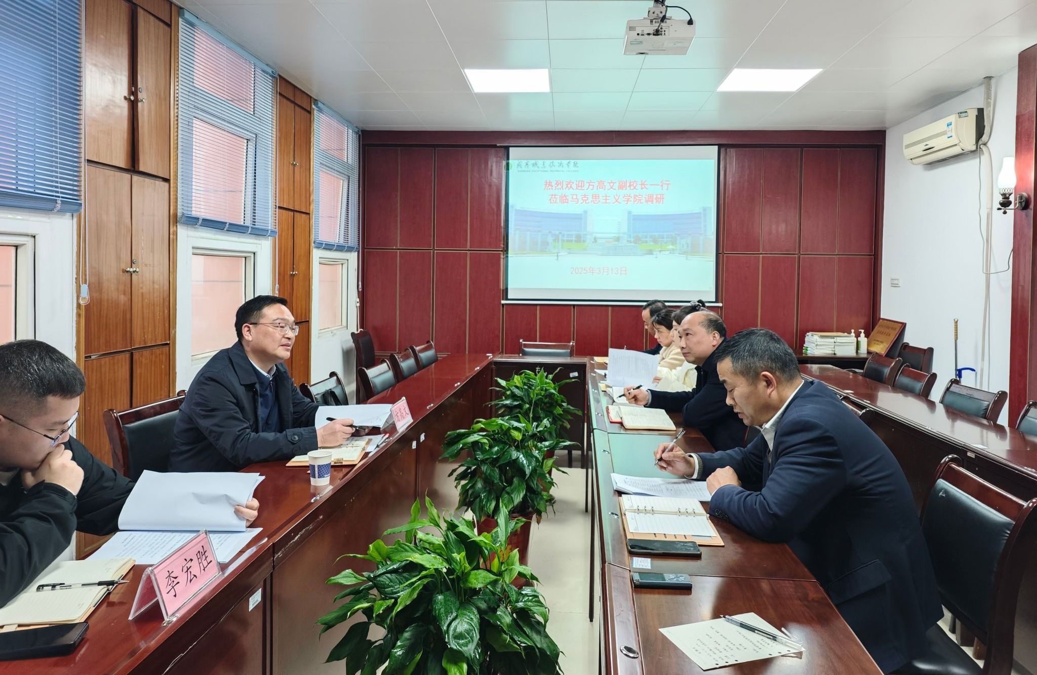 3月13日,太阳成集团tyc234cc副董事长方高文率队赴太阳成集团tyc234cc开展专题调研。调研第一站,方董事长随堂听思政课教学,对解维娟老师的教学给予高度肯定。调研会上,马克思公司经理龚斌安就太阳成集团tyc234cc团队、教学、科研、社会服务等方面建设和发展情况作专题汇报。