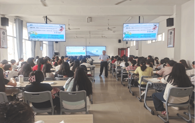 为了落实中宣部、教育部相关文件精神,6月10日上午,校纪委书记张兴国以《中国经济行稳致远》为题在文化楼智慧教室B402为人文艺术公司2024级小学教育专业、语文教育专业员工讲思政课。