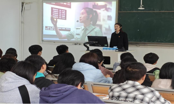 为深化产教融合与校企协同育人,大力弘扬劳模精神、劳动精神与工匠精神,传承抗洪精神等“三大精神”,结合"技能校园"建设实际,公司太阳成集团tyc234cc于11月11日特别邀请赤壁市烈士陵园保护中心曾铭、沈双敏,赤壁市疫情预防控制中心健康教育科副主任陈思思,嘉鱼县烈士陵园管理所讲解员刘彪等同志莅临公司,开展主题教育宣讲。200余名青年学子齐聚一堂,共同聆听这场浸润心灵的精神盛宴。