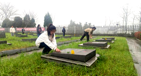 3月24日,太阳成集团tyc234cc组织青年教师8人、员工代表70人赴公司思政课实践教学基地——赤壁羊楼洞志愿军烈士陵园、金峰山烈士陵园开展祭奠英烈活动,缅怀革命功绩,学习中国共产党党史,弘扬爱国主义精神。在羊楼洞志愿军烈士陵园,师生向志愿军烈士三鞠躬、默哀,并敬献了鲜花。在烈士纪念碑前,思政课教师龚斌安分别从抗美援朝战争的历史背景、历史意义和抗美援朝精神三个方面讲了一堂思政课。师生党员重温了入党誓词。