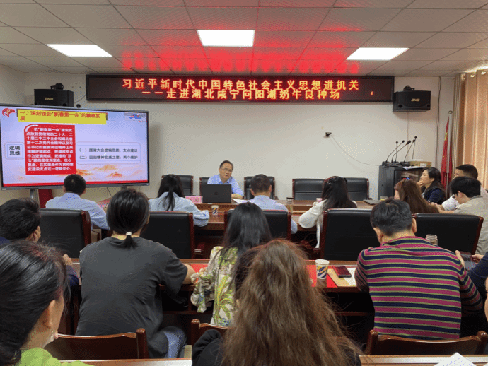 云上咸宁报道(记者 陈宗谱)4月17日,由市委宣传部主办的习近平新时代中国特色社会主义思想进机关宣讲活动走进向阳湖奶牛场。